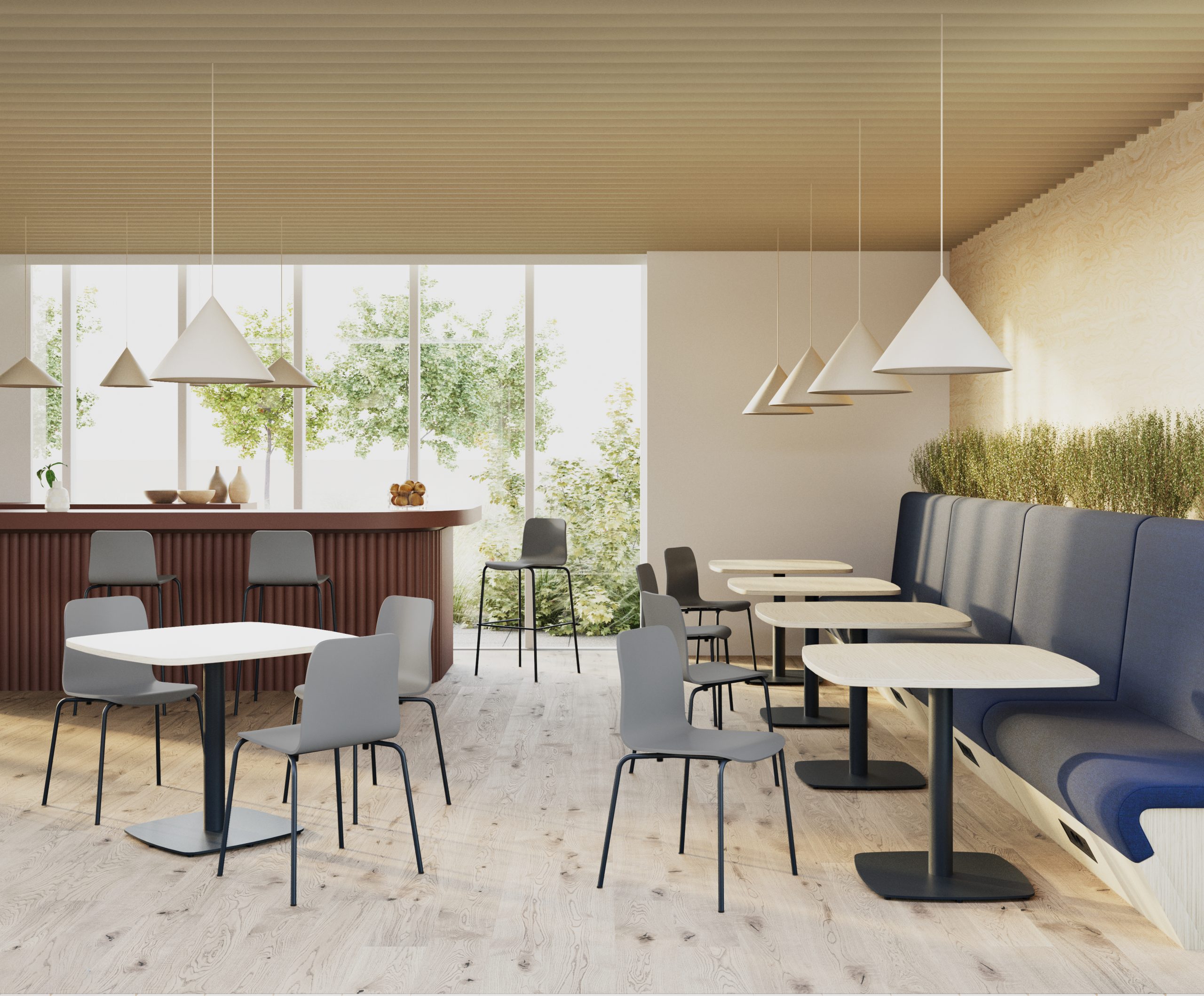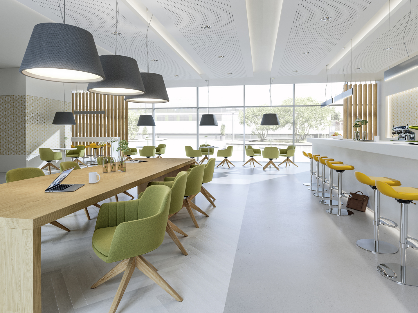 Schallabsorption durch Wand-, Decken- oder Möbelakustik ist essenziell für konzentriertes Arbeiten und gelungene Kommunikation.